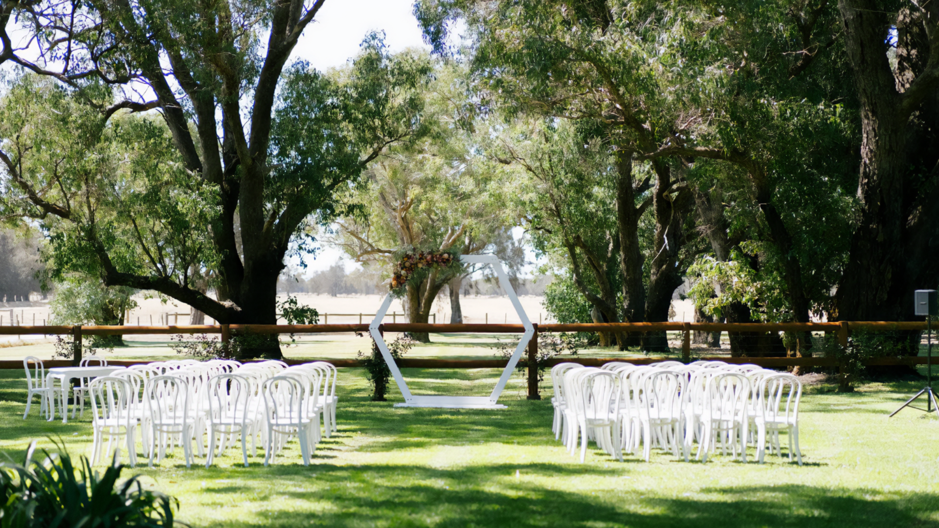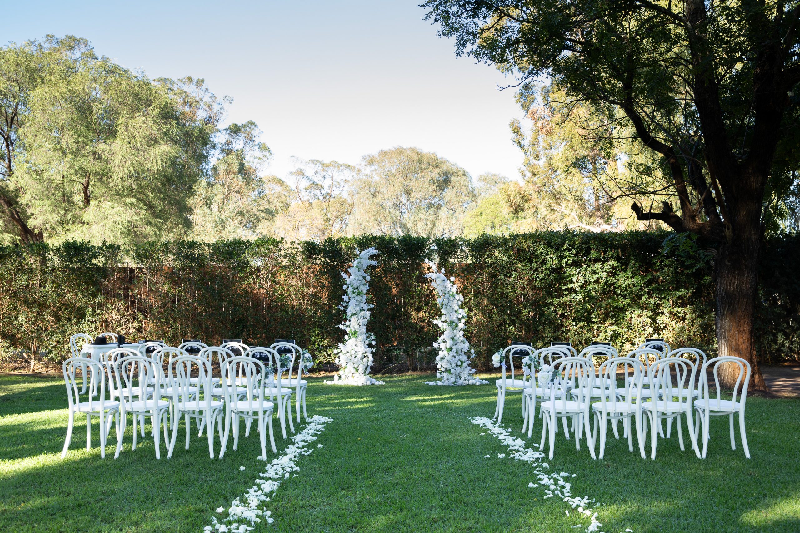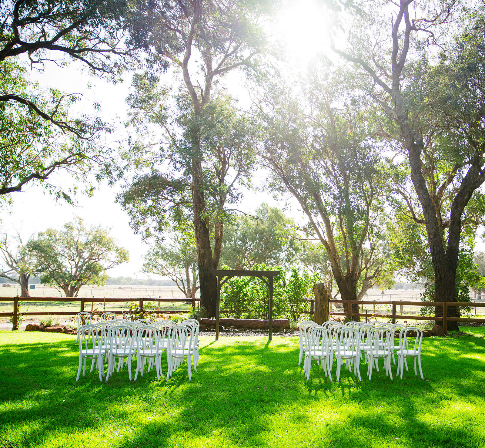 The Lilac Lawns provide a stunning layered backdrop for our eucalyptus trees and manicured green lawns, framed perfectly by our wooden fencing, and your choice of 1 of our 8 arbours.